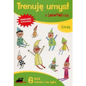 Zeszyt Trenuję umysł z Lokomotywą. Liczę pomaga dzieciom opanować umiejętność przeliczania bez użycia cyfr. Uzupełnieniem zeszytu są naklejki i wycinanki.