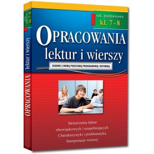 Książka dla klas 7-8 zawiera omówienia wszystkich znajdujących się w podstawie lektur, zarówno obowiązkowych, jak i uzupełniających, oraz interpretacje i analizy najczęściej omawianych wierszy wymienionych poetów. Są tutaj biografie, streszczenia, charakterystyki bohaterów, problematyka - wszystkie najważniejsze informacje o lekturze w jednym miejscu.